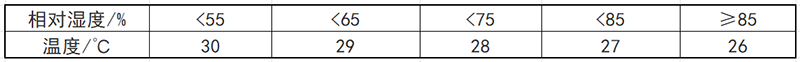 空氣調(diào)節(jié)廠房內(nèi)不同濕度下的溫度要求(上限值)