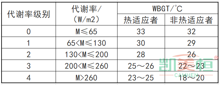 注:設(shè)立此WBGT標準值以使高溫作業(yè)工人的中心體溫不超過38℃。